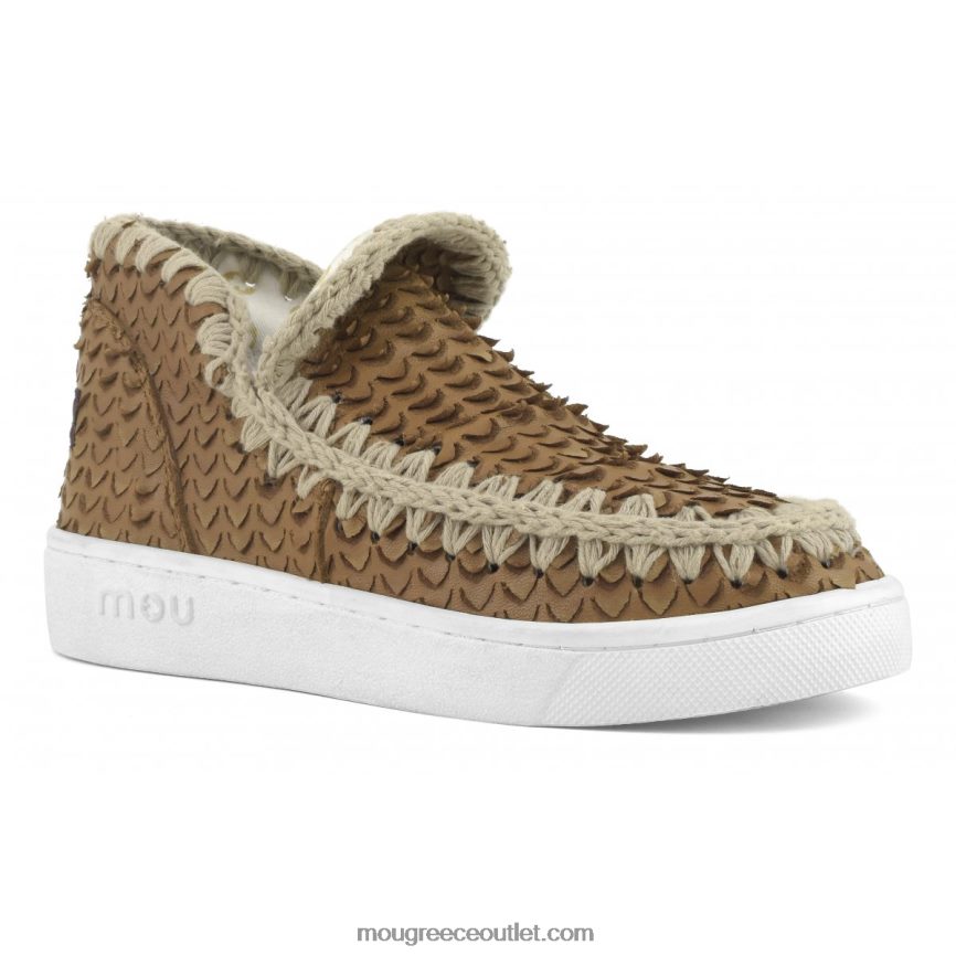 γρ Mou γυναίκες δερμάτινο καλοκαιρινό sneaker eskimo δέρμα με λέπια/κοψίματα κονιάκ 4820DN17