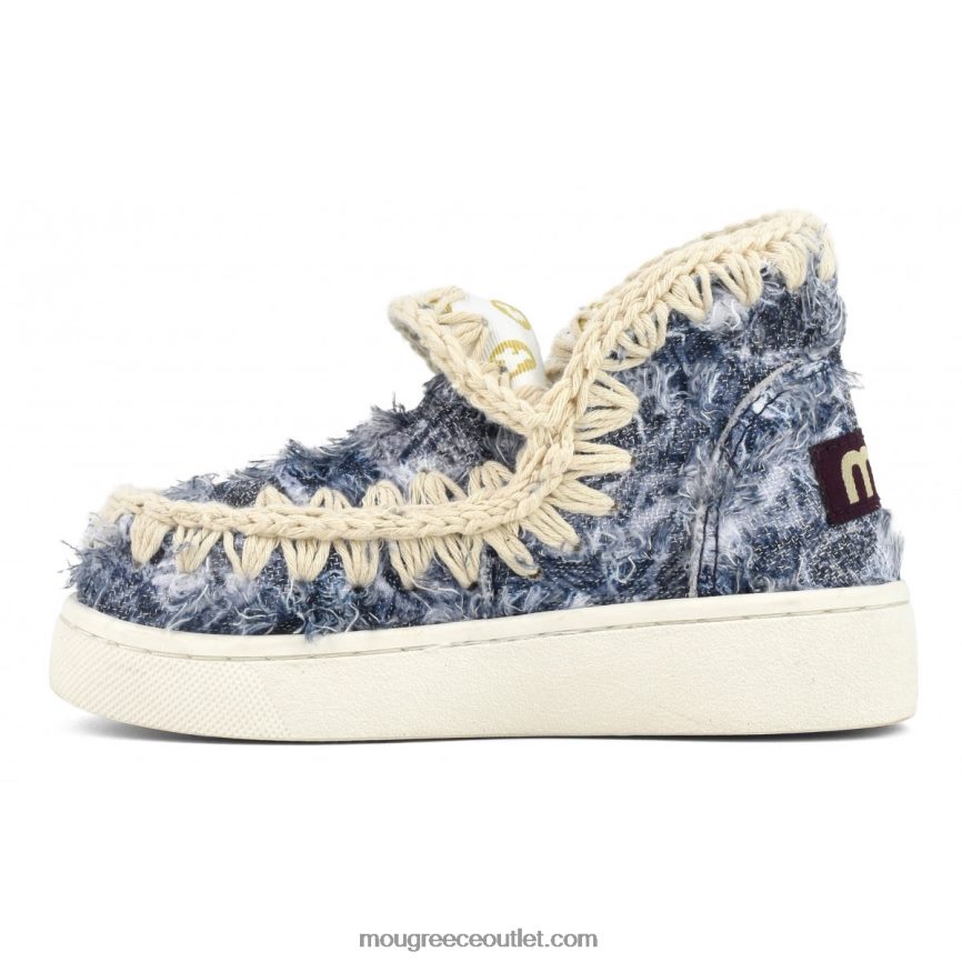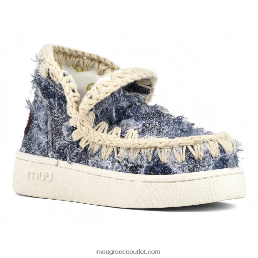 το κομψό τζιν συνονθύλευμα καλοκαιρινό eskimo sneaker για παιδιά, με το σήμα κατατεθέν της λεπτομέρειες από βελονιά με βελονάκι, δίχρωμη ριγέ επένδυση από βαμβακερό καμβά, μια επένδυση από σουέτ σόλα και μια εύκαμπτη σόλα από καουτσούκ. ύψος 11 εκ.