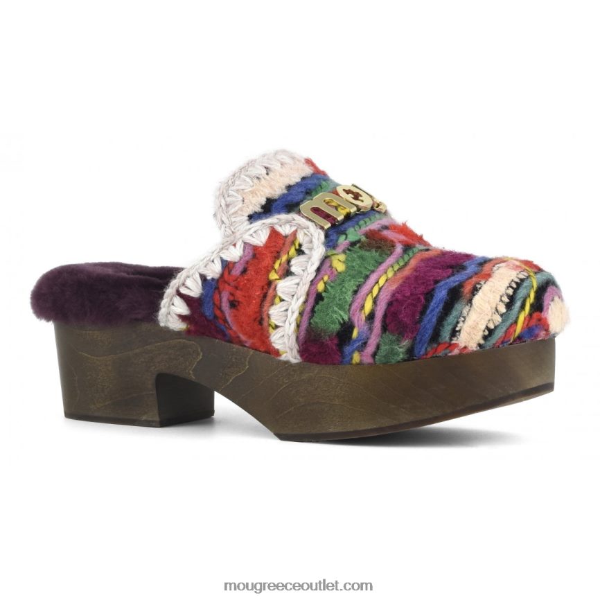 γρ Mou γυναίκες τσόκαμα φτέρνας από χοντρό ξύλο έθνικ μαλλί πολύχρωμο 4820DN533