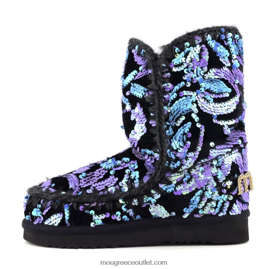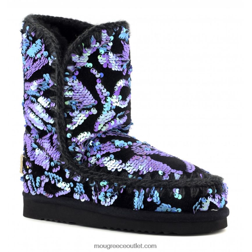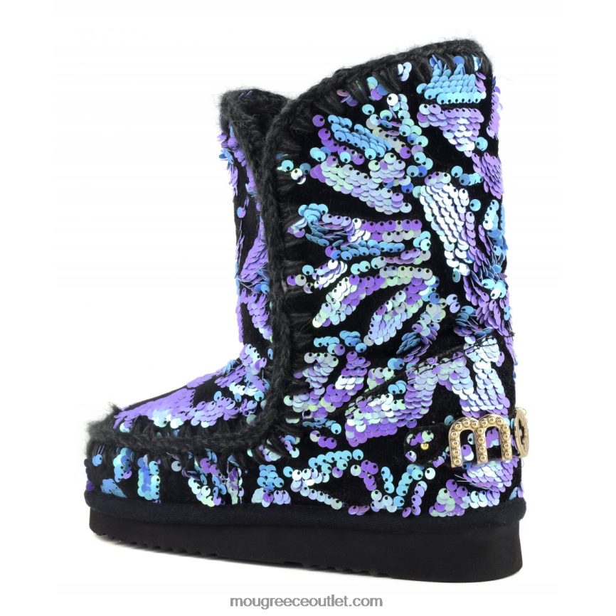 Το εμβληματικό μας eskimo mou με μεγάλα καρφιά με λογότυπο λαμπυρίζει σε πολυτελές βελούδο φινιρισμένο με ιριδίζουσες πούλιες. Επενδεδυμένο με γνήσιο, απαλό δέρμα προβάτου, με λεπτομέρειες από μάλλινες βελονιές από κροσέ, υποστηρικτικό τακούνι και εξωτερική σόλα eva & καουτσούκ, αυτό το στυλ είναι κομψό, άνετο και ανθεκτικό. ύψος 24 εκ. κανονική γραμμή.
