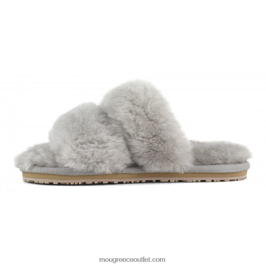 γρ Mou γυναίκες Παντόφλα γούνας προβάτου με 2 ρίγες ανοιχτό γκρι 4820DN453