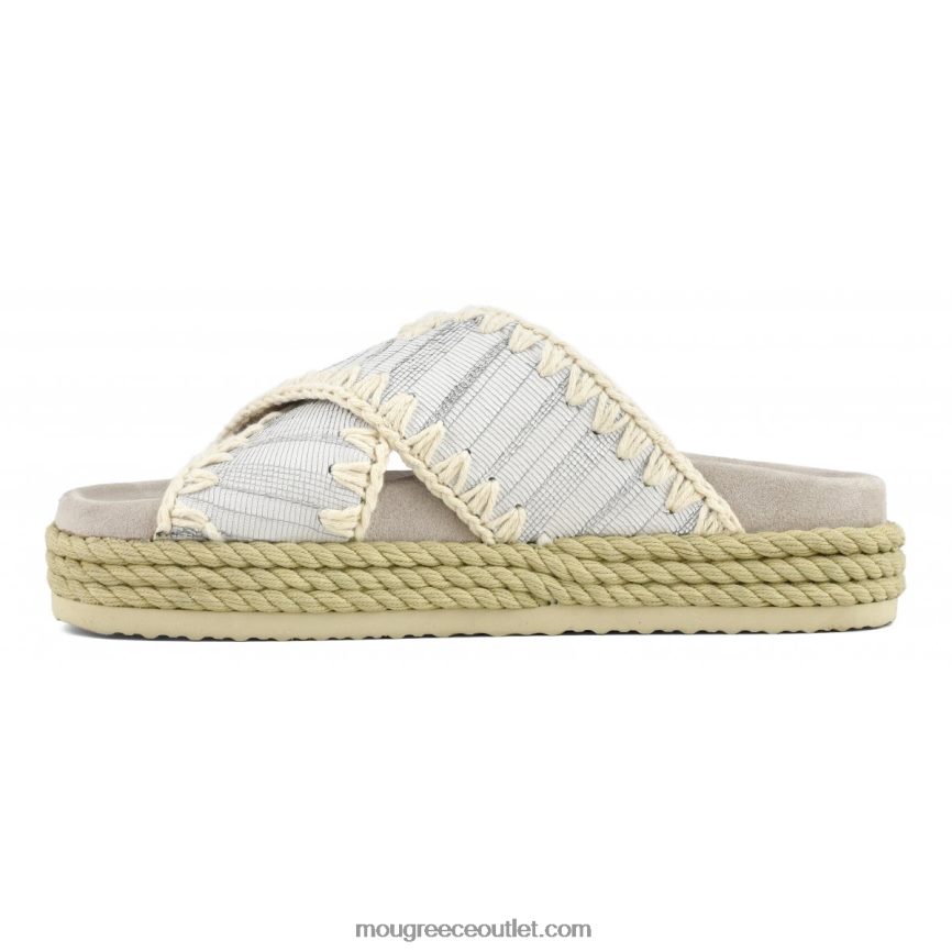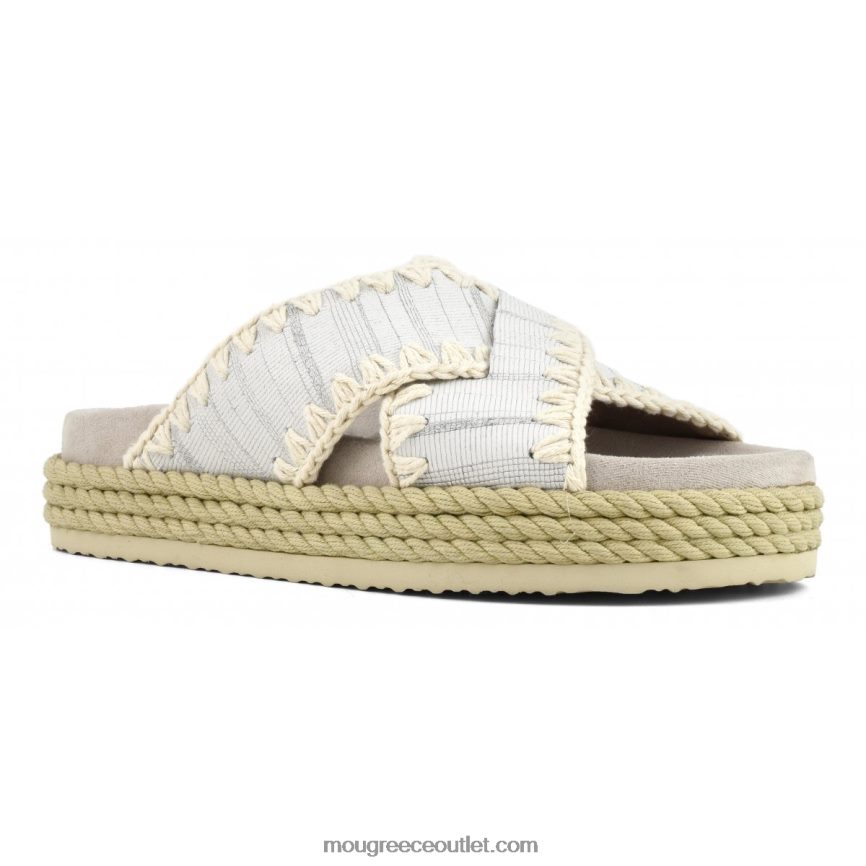 γρ Mou γυναίκες σχοινί βιο πέδιλο κρις σταυρός δέρμα με κοψίματα λευκό 4820DN131