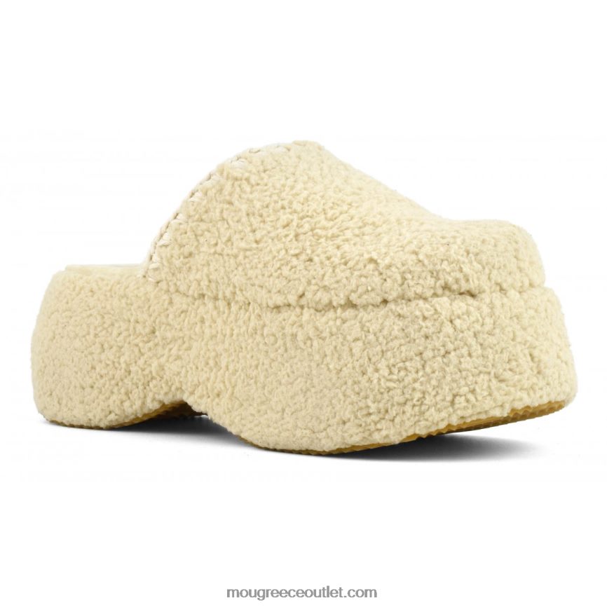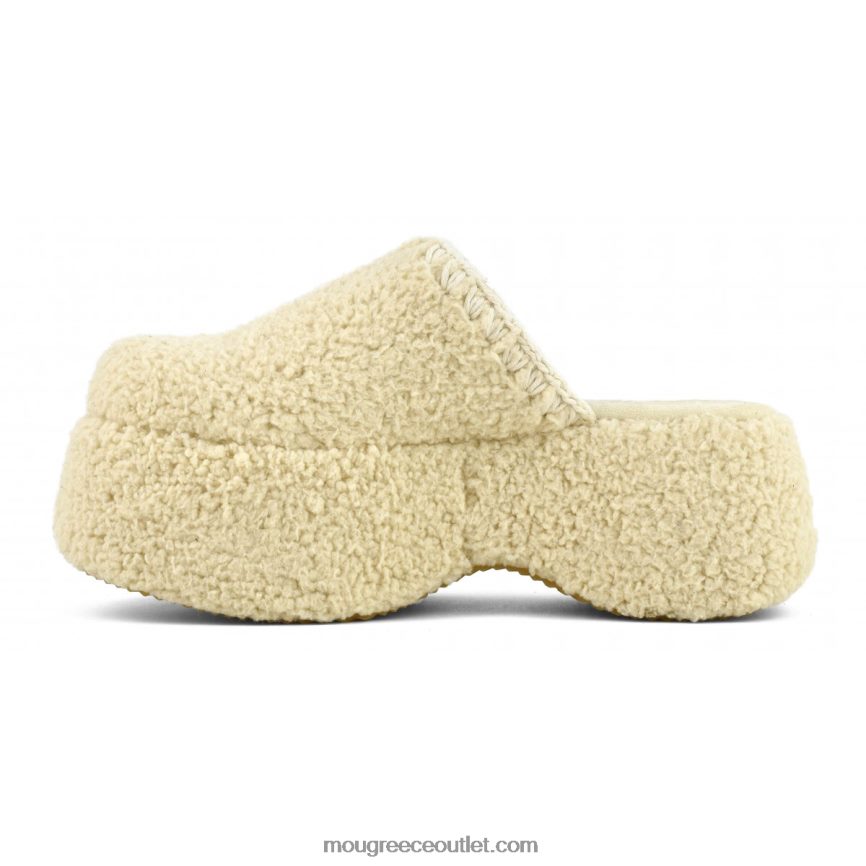 η χαριτωμένη χονδροειδής πλατφόρμα από ψεύτικη γούνα σέρπα είναι χειροποίητη με λεπτομέρειες από το σήμα κατατεθέν mou βελονιά με βελονάκι, μια ελαφριά σόλα από καουτσούκ και μια γεμισμένη σόλα από μικροσουέτ για επιπλέον άνεση. ύψος 5 cm.
