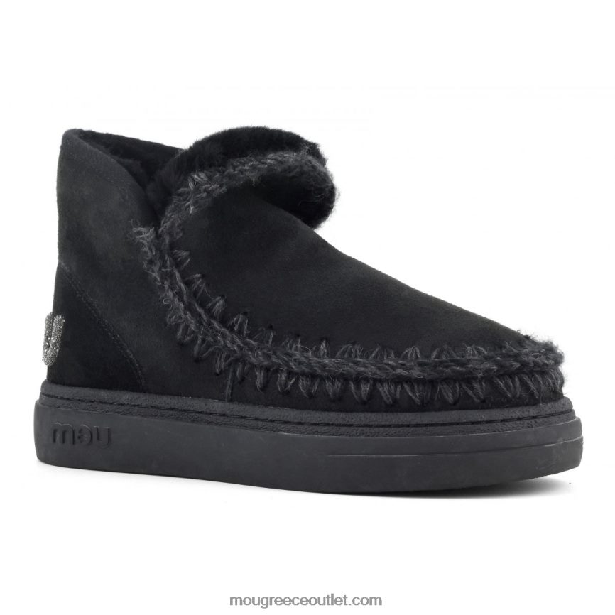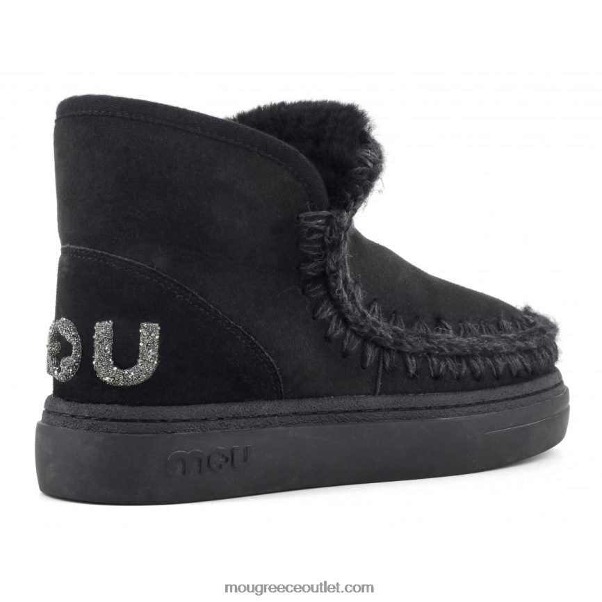 γρ Mou γυναίκες Έσκιμο πάνινα παπούτσια με έντονο γκλίτερ λογότυπο μαύρος 4820DN729