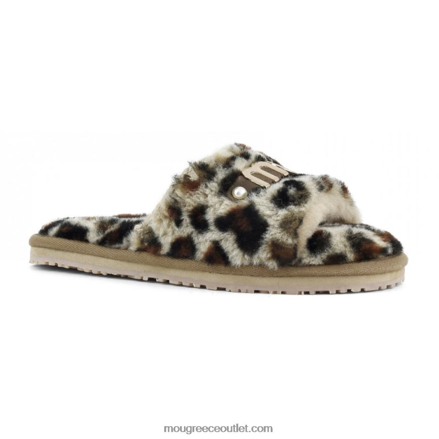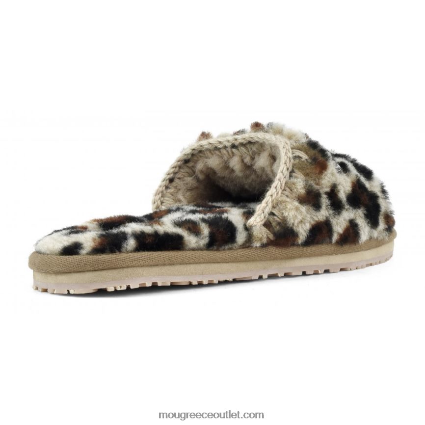 γρ Mou γυναίκες slide γούνινη παντόφλα με λογότυπο μαύρο/λεοπάρ 4820DN499
